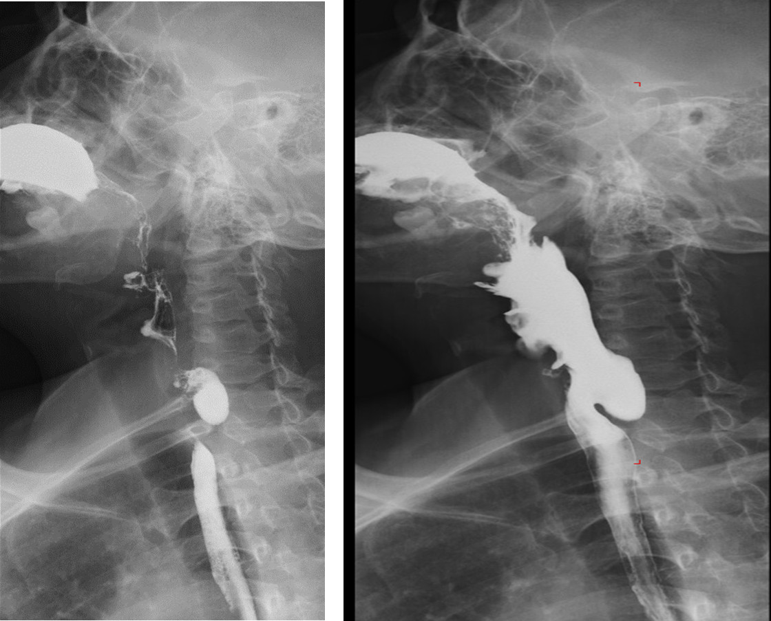 Esophagram: Residual Zenker's diverticulum, although marsupialized.